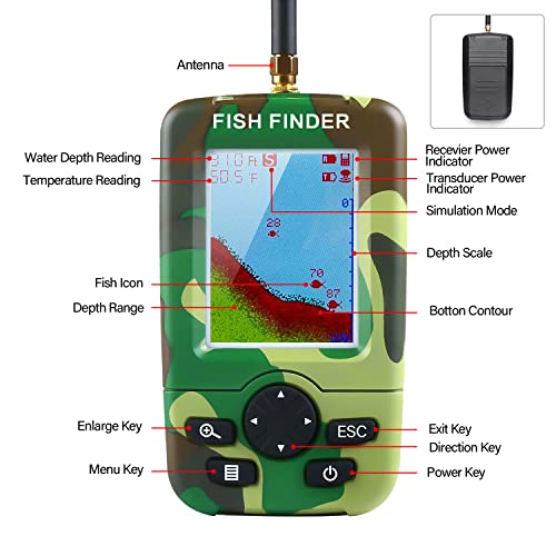 - 【LCD fish finder】LCD fishfinder can simulate the underwater environment and terrain, display the spot and depth of the fish layer; Sonar sensor can detect the underwater range of 90 degrees and the depth of near to 100M ; Lightweight and suitable for most fishing methods